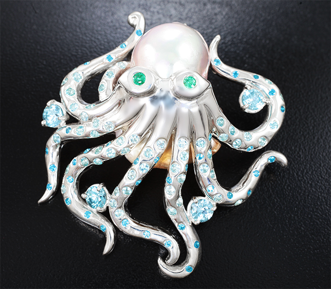 Кулон с крупной морской жемчужиной барокко 43,75 карата, изумрудами, цирконами и апатитами