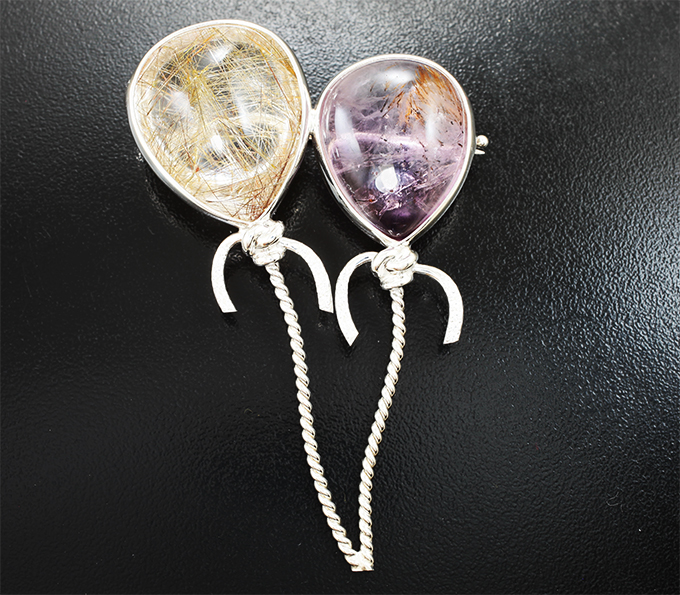 Брошь с аметрином с гетитом 37,77 карата, рутиловым кварцем 56,47 карата и лейкосапфирами