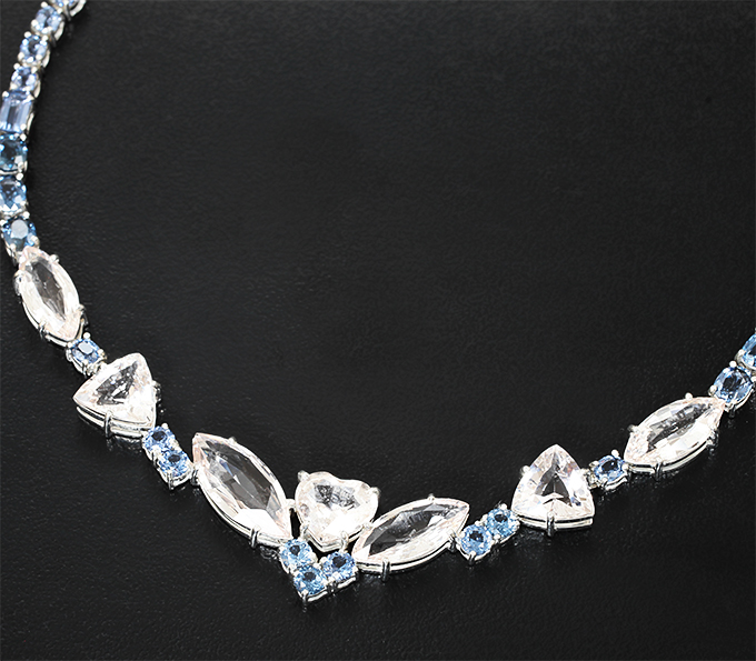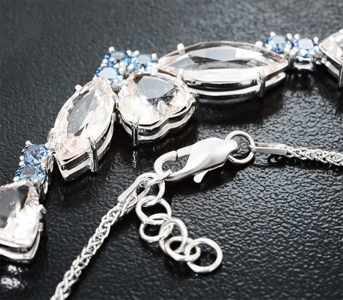 Вашему вниманию предлагается колье из стерлингового серебра (925 проба) с морганитами и синими шпинелями! Длина по цепочке регулируемая: от 450 мм до 470 мм. Вес изделия 17,47 г. Ниже приводятся ювелирные характеристики вставок.