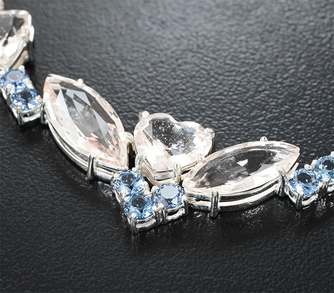 Колье с морганитами 16.03 карата и синими шпинелями