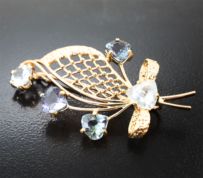 Брошь с цоизитами 2,19 карата и фенакитами 1,58 карата