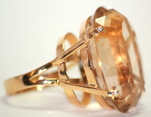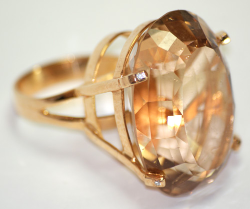 Вашему вниманию предлагается кольцо из желтого золота (585 проба) с крупным топазом и бриллиантами! Диаметр бриллиантов 1 мм. Ширина площадки 31 мм, высота 20,5 мм. Вес изделия 27,3 г. Размер 20.
