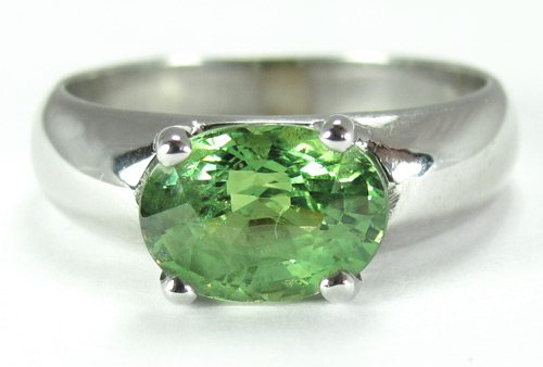 Вашему вниманию предлагается кольцо из белого золота 750 пробы с потрясающим демантоидом! Ширина площадки 6,5 мм, высота 5 мм. Вес изделия 4,26 г. Размер 17.