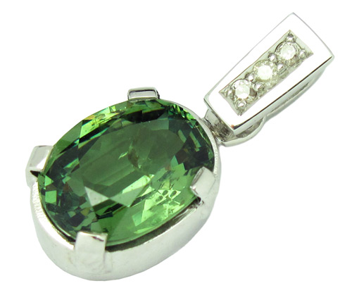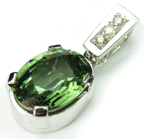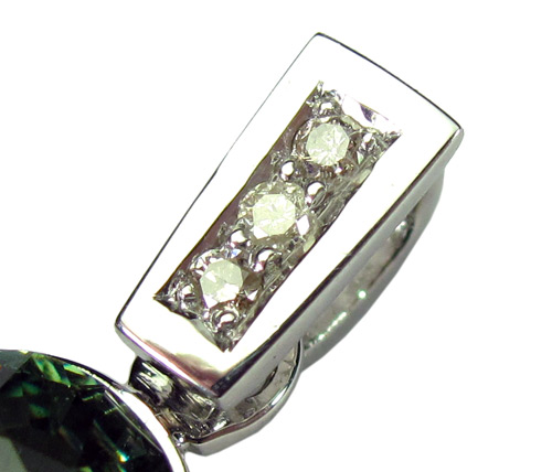 Вашему вниманию предлагается авторская работа — кулон из белого золота 750 пробы с изумительным демантоидом! Петля кулона украшена тремя бриллиантами диаметром 1,5 мм. Размеры кулона с петлей 19,5 х 8,5 х 5,5 мм. Вес изделия 2,63 г.