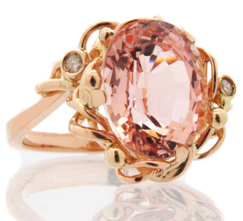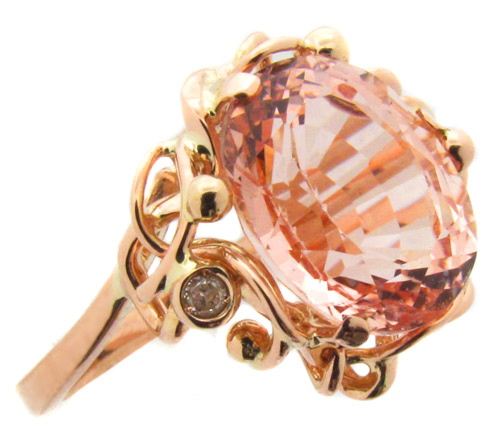 Вашему вниманию предлагается ажурное кольцо из розового золота 585 пробы с великолепным морганитом и бриллиантами! Диаметр бриллиантов 1,6 мм. Ширина площадки 14 мм, высота 7,2 мм. Вес изделия 3,9 г. Размер 15,5.