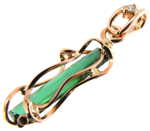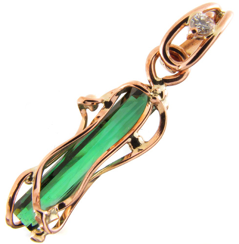 Вашему вниманию предлагается ажурный кулон выполненный по оригинальному эскизу из желтого золота 585 пробы с чистейшим неоновым турмалином и бриллиантом! 100% ручная работа! Диаметр бриллианта 2 мм. Размеры кулона с петлей 31,5 х 8,5 мм. Вес изделия 1,53 г. Ниже приводятся ювелирные характеристики камня.