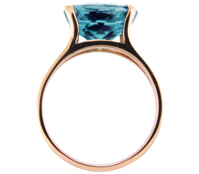Вашему вниманию предлагается кольцо из розового золота 585 пробы с красивым голубым цирконом! Ширина площадки 7,2 мм, высота 7,2 мм. Вес изделия 3,6 г. Размер 17,5. Ниже приводятся ювелирные характеристики вставки.