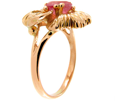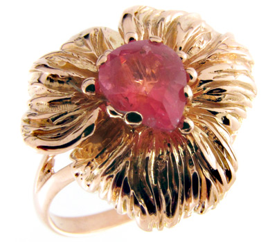 Вашему вниманию предлагается кольцо из розового золота 585 пробы с редким коллекционным бериллом — биксбитом! Ширина площадки 16 мм, высота 6,2 мм. Вес изделия 6,1 г. Размер 17. Ниже приводятся ювелирные характеристики вставки.