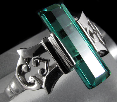 Вашему вниманию предлагается кольцо из стерлингового серебра (925 проба) с родиевым покрытием с чистейшим «неоновым» турмалином! Ширина площадки 14,5 мм, высота 5 мм. Вес изделия 2,9 г. Размер 18. Ниже приводятся ювелирные характеристики вставки.