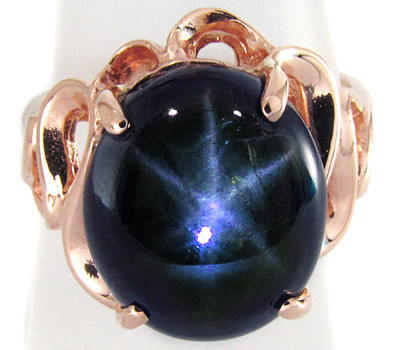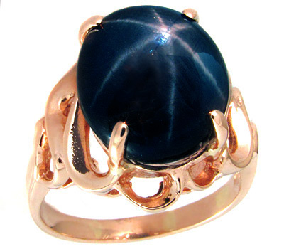 Кольцо с эффектным звездчатым сапфиром