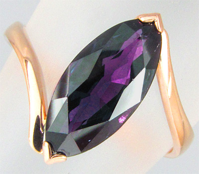Вашему вниманию предлагается кольцо из золота 585 пробы с сапфиром с александритовым эффектом! Ширина площадки 14 мм, высота 5,5 мм. Вес изделия 3,3 г. Размер 18. Камень имеет российский сертификат. Экспертная оценка $354. Ниже приводятся ювелирные характеристики вставки.