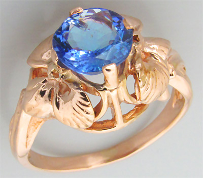 Кольцо с красивым ярким танзанитом