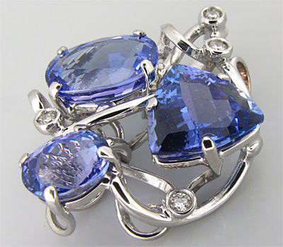 Вашему вниманию предлагается кулон из золота 585 пробы с эффектными танзанитами и бриллиантами! Диаметр бриллиантов 2 мм. Размеры кулона с петлей 24 х 19 мм. Вес изделия 4 г. Ниже приводятся ювелирные характеристики камней.