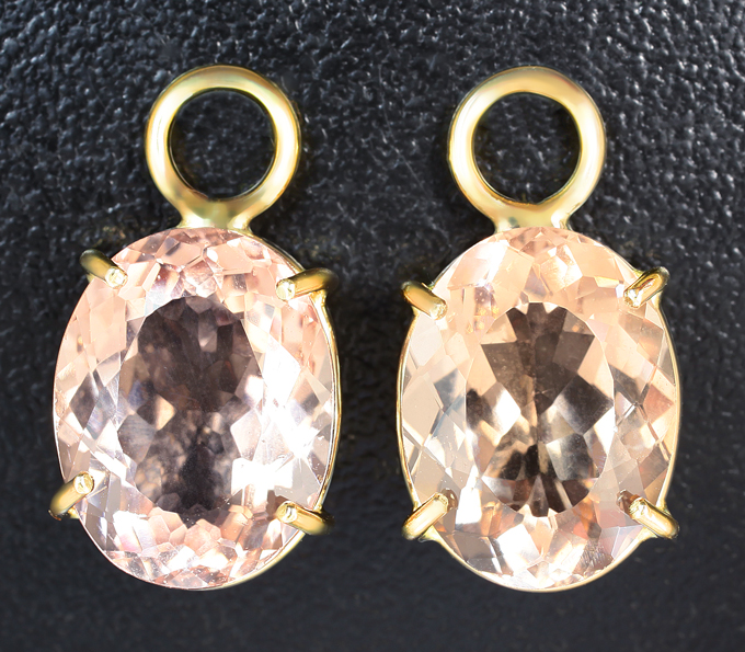 Вашему вниманию предлагаются подвесы из желтого золота 585 пробы с морганитами 11,61 карата! Размеры вставок 14 х 10 мм. Размеры изделия 20 х 11 мм. Вес пары 3,8 г.