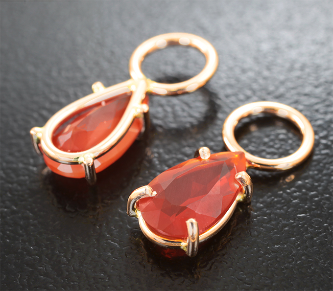 Вашему вниманию предлагаются подвесы для серег из красного золота 585 пробы с ограненными мексиканскими опалами 1,44 карата! Размеры вставок 10 х 5 мм. Размеры изделия 17 х 7 мм. Вес пары 1,17 г.
