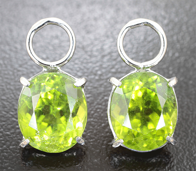 Вашему вниманию предлагаются подвесы для серег из белого золота 585 пробы с перидотами! Размеры изделия 18 х 9 мм. Вес пары 3,27 г. Ниже приводятся ювелирные характеристики вставок.