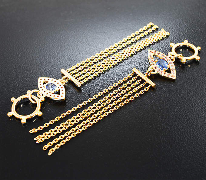 Вашему вниманию предлагаются подвесы для серег из желтого золота 585 пробы с синими и оранжевыми сапфирами, а также бриллиантами! Диаметр дополнительной инкрустации 1,2 мм и 1,3 мм. Площадка серег 70 х 15 мм. Вес пары 6,67 г.Ниже приводятся ювелирные характеристики вставок.