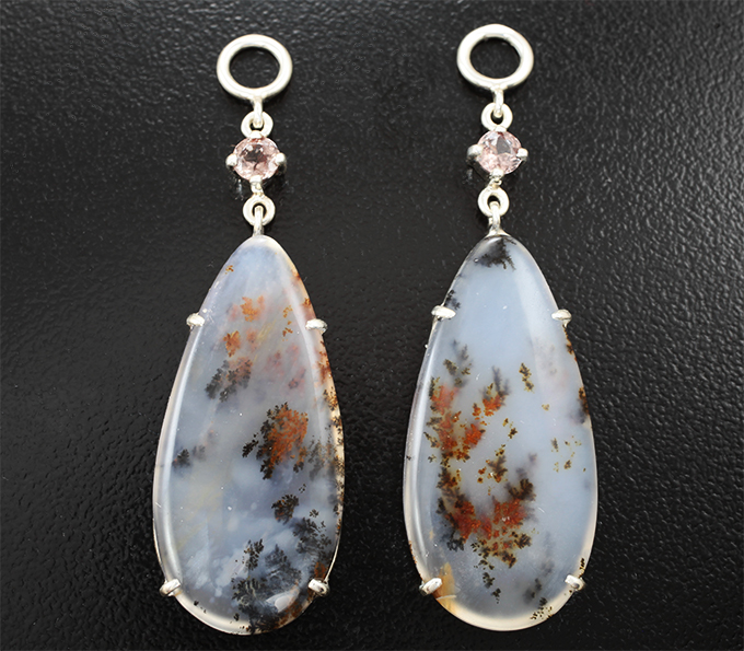 Подвесы для серег с агатом с включениями дендритов 16,02 карата и гранатами со сменой цвета