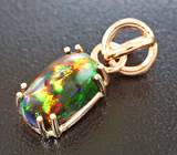 Украшение выполнено на заказ и представлено на сайте в качестве примера выполненных работ. Описание: Вашему вниманию предлагается кулон из розового золота 585 пробы с кристаллическим черным опалом топового качества! Опалесценция всеми цветами радуги! Размеры кулона с петлей 22 х 8 мм. Вес изделия 1,8 г. Ниже приводятся ювелирные характеристики вставки.
