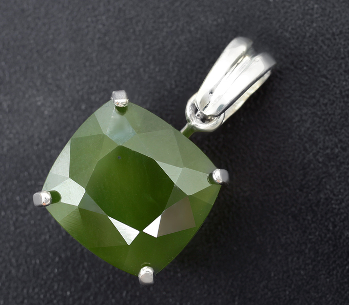 Украшение выполнено на заказ и представлено на сайте в качестве примера выполненных работ. Описание: Вашему вниманию предлагается кулон из белого золота 585 пробы с нефритом! Размеры кулона с петлей 24 х 13 мм. Вес изделия 2,8 г. Ниже приводятся ювелирные характеристики вставкий.