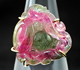 Кольцо c крупным резным арбузным турмалином 24,6 карата