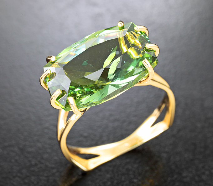 Кольцо с крупным полихромным апатитом авторской огранки 9,79 карата