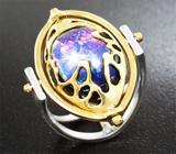 Серьги с кристаллическими черными опалами, синими сапфирами и цаворитами гранатами
