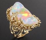 Кольцо с кристаллическимм черным опалом