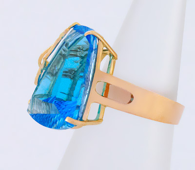 Вашему вниманию предлагается кольцо из золота 585 пробы с топазом авторской огранки! Размеры площадки 20,5 х 18 мм, высота 11 мм. Вес изделия 10,4 г. Размер 17,5. Ниже приводятся ювелирные характеристики вставки.