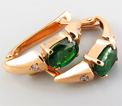 Cерьги, инкрустированные цаворитами гранатами и бриллиантами