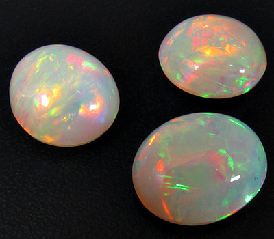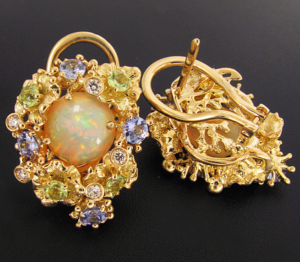 Комплект (кольцо + серьги) с эфиопскими опалами, бриллиантами, танзанитами и перидотами