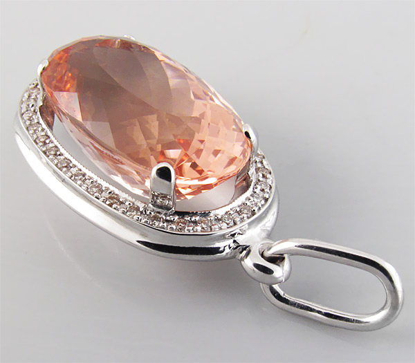 Вашему вниманию предлагается кулон из золота 585 пробы с морганитом и 34-я бриллиантами! Диаметр бриллиантов 1,25 мм, общий вес 0,29 карата. Размеры кулона с петлей 34 х 16 мм. Вес изделия 6,2 г. Ниже приводятся ювелирные характеристики морганита.