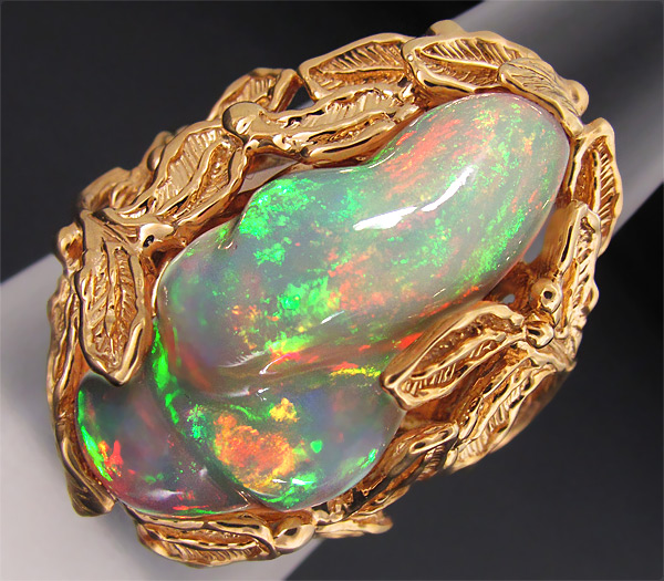 Вашему вниманию предлагается кольцо из золота 585 пробы с удивительным эфиопским опалом! Основные цвета опала: красный/зеленый/желтый/оранжевый. Площадка кольца 28 х 19 мм, высота 11 мм. Вес изделия 12,2 г. Размер 17,5. Ниже приводятся ювелирные характеристики вставки.