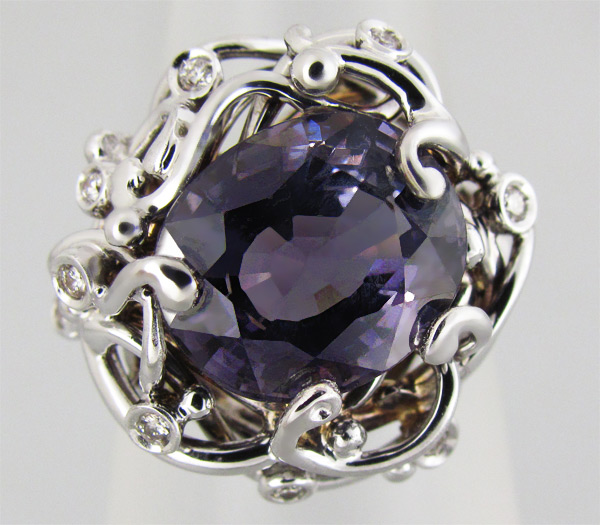 Кольцо с серебристо-пурпурной шпинелью и 10-ю бриллиантами