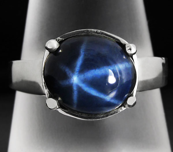 Вашему вниманию предлагается кольцо из стерлингового серебра 925 пробы со звездчатым сапфиром с 6-лучевой звездой! Размеры площадки 11 х 11,5 мм, высота 7,5 мм. Вес изделия 5,4 г. Размер 20. Ниже приводятся ювелирные характеристики вставки.