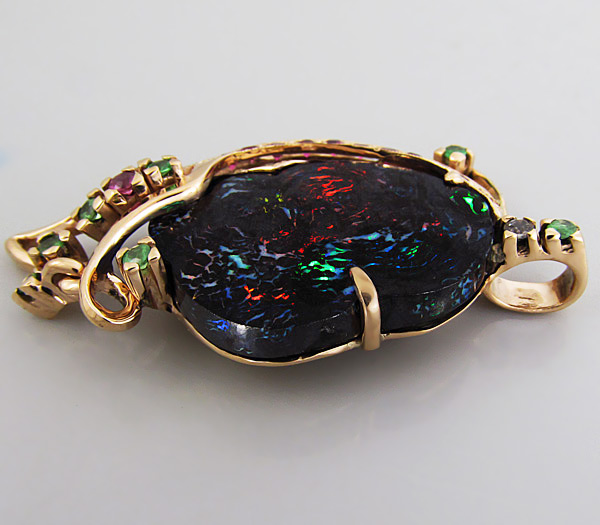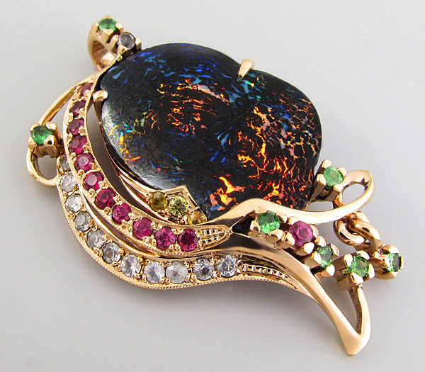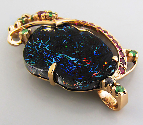 Кулон с фантастическим болдер опалом, цаворитами гранатами и разноцветными сапфирами