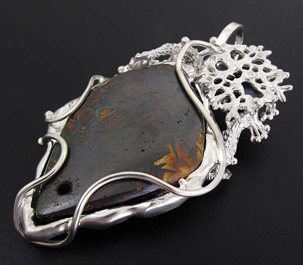 Кулон с болдер опалом и звездчатым сапфиром