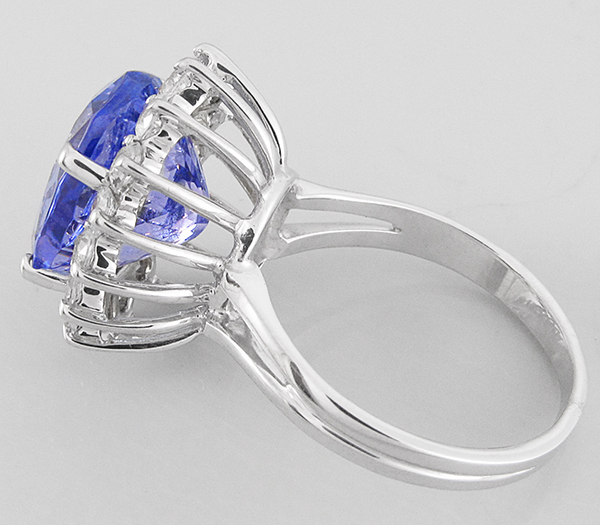 Кольцо с танзанитом и бесцветными сапфирами