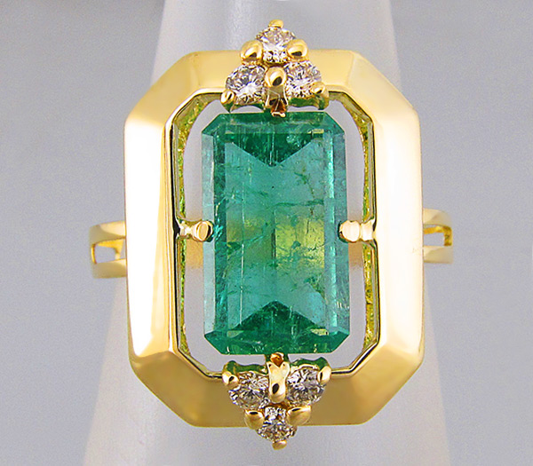 Кольцо с уральским изумрудом и бриллиантами