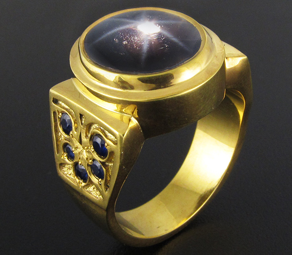 Вашему вниманию предлагается кольцо из позолоченного стерлингового серебра 925 пробы со звездчатым и синими сапфирами! Диаметр мелких сапфиров 2 мм. Площадка 22 х 17 мм, высота 7 мм. Вес изделия 13,6 г. Размер 19. Ниже приводятся ювелирные характеристики звездчатого сапфира.