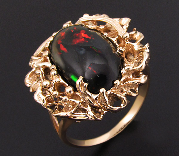 Вашему вниманию предлагается кольцо из золота 585 пробы с черным опалом! Сквозная опалесценция камня! Площадка 23 х 23 мм, высота 7 мм. Вес изделия 7,9 г. Размер 20. Ниже приводятся ювелирные характеристики опала.