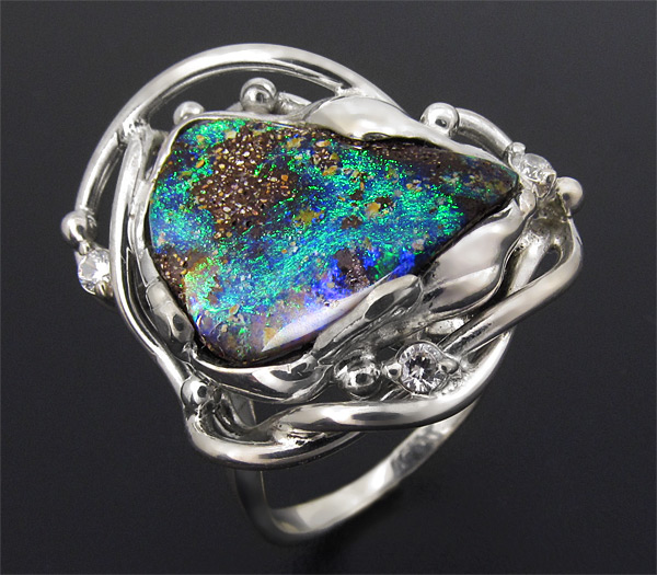 Кольцо с австралийским болдер опалом