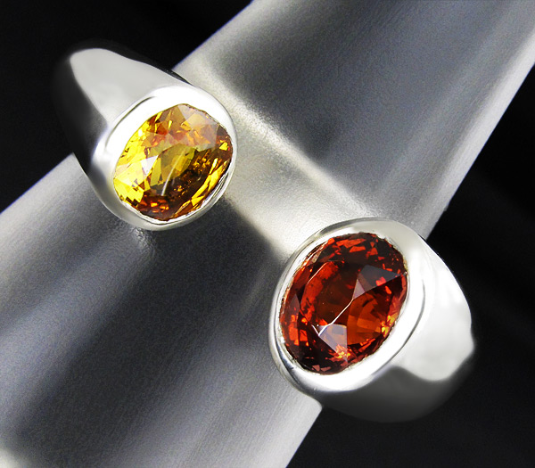 Кольцо с мандариновым спессартином гранатом и золотисто-желтым сапфиром