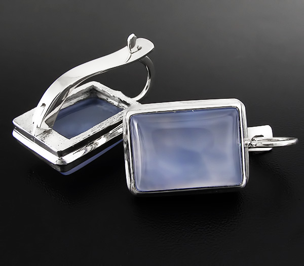 Вашему вниманию предлагаются серьги из стерлингового серебра (925 проба) с кабошонами халцедона! Площадка серег 24 х 13 мм. Вес пары 8,1 г. Ниже приводятся ювелирные характеристики халцедона.