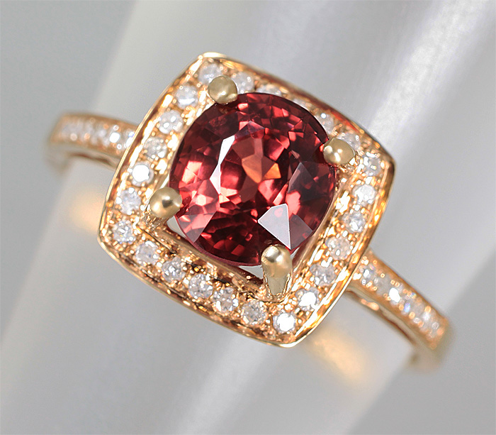 Вашему вниманию предлагается кольцо из золота 14 карат (583 проба) с красивейшей бирманской шпинелью и 38 бриллиантами массой 0,16 карат! Диаметр бриллиантов 1 мм. Площадка 20 х 10 мм, высота 8 мм. Вес изделия 2,5 г. Размер 18. Ниже приводятся ювелирные характеристики шпинели.