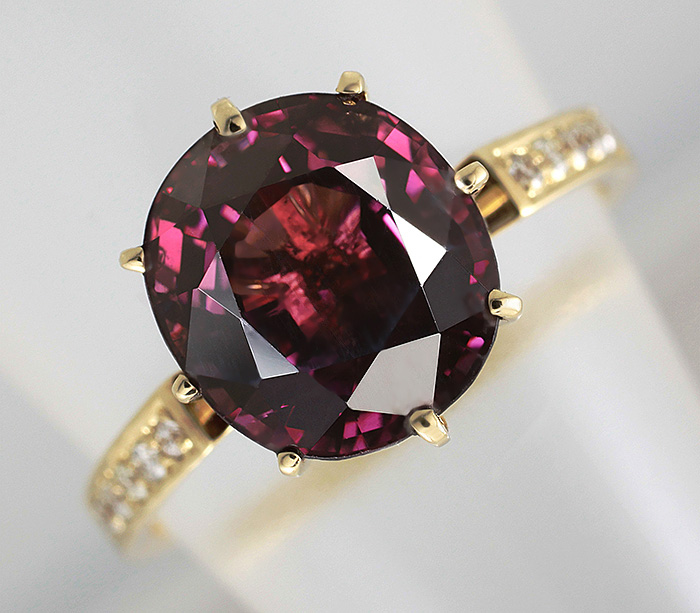 Кольцо c пурпурно-розовой шпинелью и бриллиантами