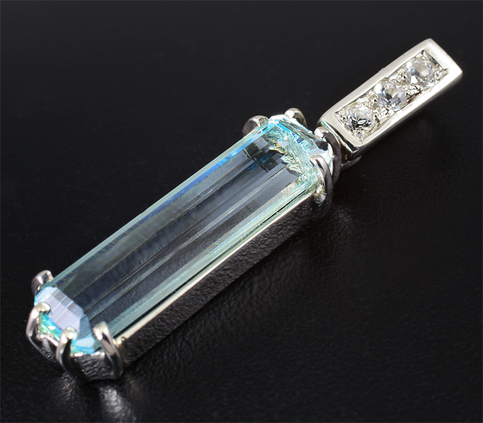 Кулон с аквамарином и бесцветными сапфирами