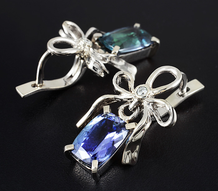 Вашему вниманию предлагаются серьги из золота 585 пробы с парой полихромных танзанитов и бриллиантами массой 0,07 карат! Диаметр бриллиантов 2 мм. Площадка серег 24 х 14 мм. Вес пары 7,4 г. Ниже приводятся ювелирные характеристики танзанитов.
