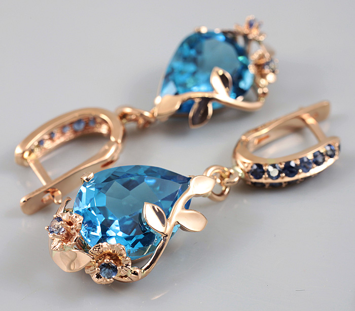 Вашему вниманию предлагаются серьги из золота 585 пробы с топазами и синими сапфирами! Диаметр сапфиров 2 мм. Размеры серег с петлей 44 х 14 мм. Вес пары 12,7 г. Ниже приводятся ювелирные характеристики топазов.