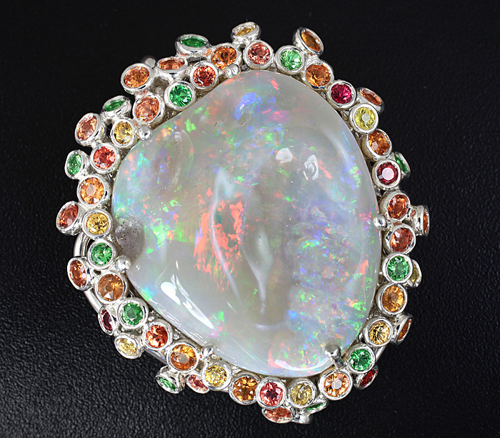 Вашему вниманию предлагается кулон из стерлингового серебра (925 проба) с окаменевшим опализированным моллюском, цаворитами гранатами и разноцветными сапфирами! Яркая сквозная радужная опалесценция! Основные цвета опалесценции: все цвета радуги. Диаметр дополнительных вставок 2 мм. Площадка кулона 38 х 34 мм. Вес 17,4 г. Ниже приводятся ювелирные характеристики центральной вставки.